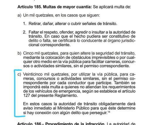 La multa a conductores que cometan dicha infracción es de Q25,000.