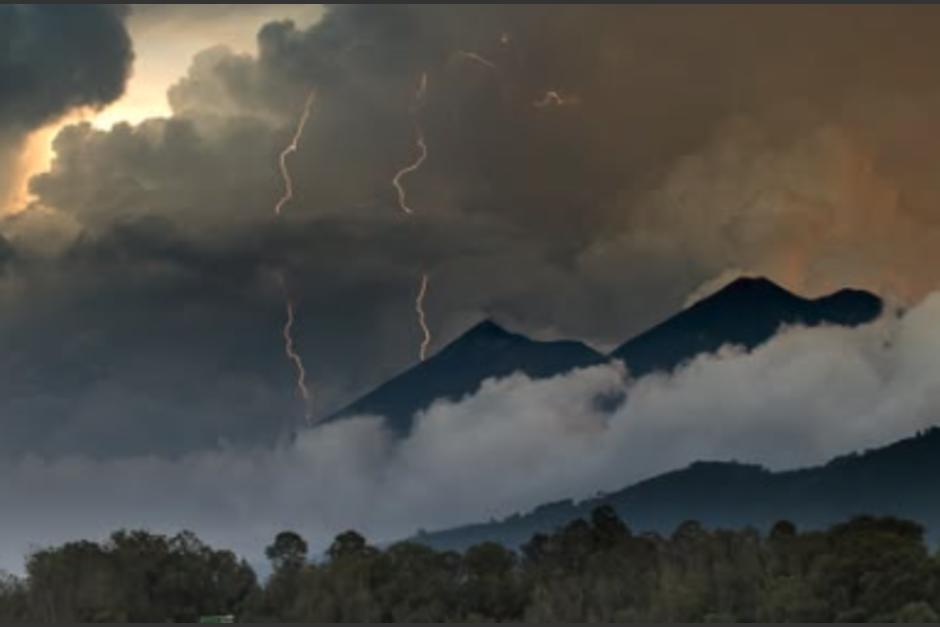 Durante la tarde del pasado sábado 5 de julio, un rayo cayó sobre los volcanes de Fuego y Acatenango.