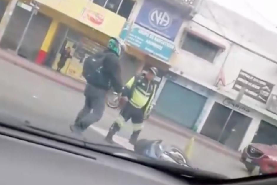 Un altercado violento se registró en el redondel de la Colonia Atlántida, zona 18, el miércoles 19 de febrero, cuando un motorista y un agente de la Policía Municipal de Tránsito (PMT) se enfrentaron a golpes.