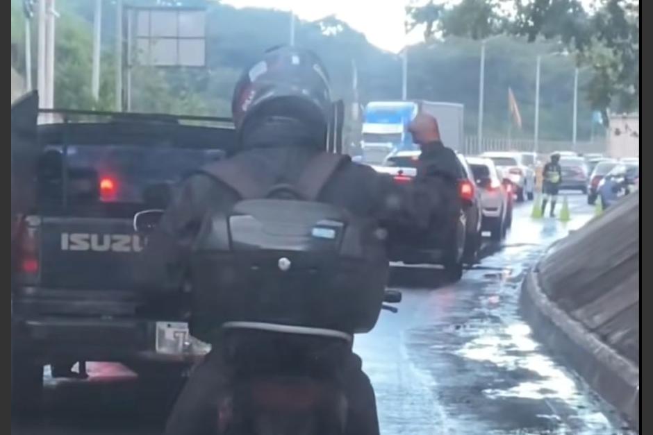 Los segundos posteriores muestran al motorista hacerse a la orilla del lado derecho, y al ver detenidamente en el fondo se observa a un agente de la Policía Municipal de Tránsito (PMT).