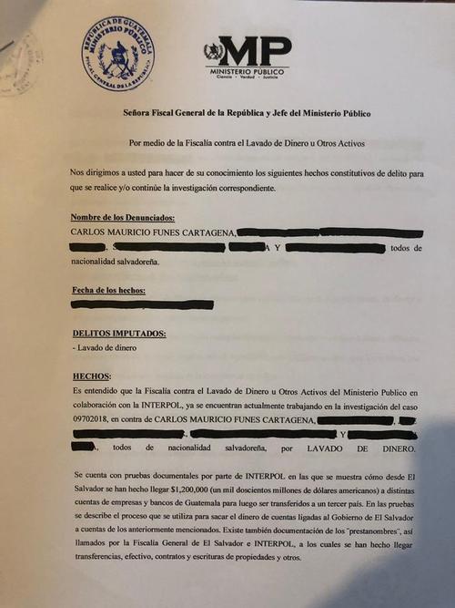 Por ejemplo, el número de denuncia que se consigna -09702018- no corresponde a ningún documento del MP de Guatemala.