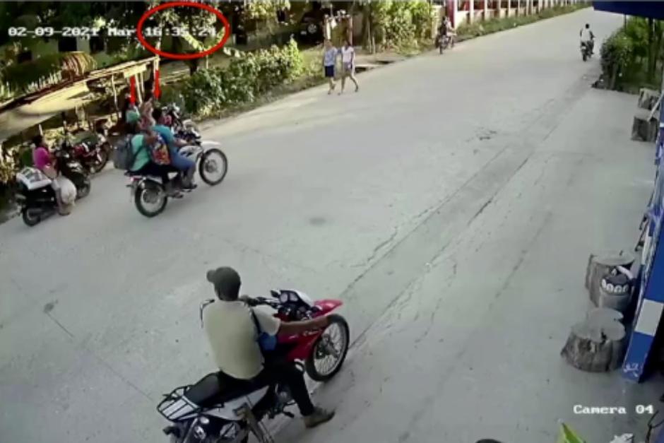 Estas son las imágenes que presentó el MP: Sonia González y Sergio López se conducen en una motocicleta. La mujer carga las bolsas de mercado.