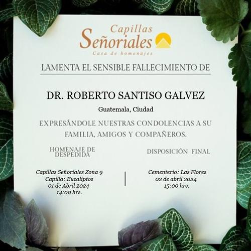 "La Junta Directiva y Dirección Ejecutiva de Aprofam, lamentan el sensible fallecimiento del Dr. Roberto Santiso, miembro Fundador y Exdirector Ejecutivo. Destacado Ginecólogo y Obstetra guatemalteco, con una incansable labor en la promoción de la salud y la planificación familiar", destacó Aprofam en una publicación.