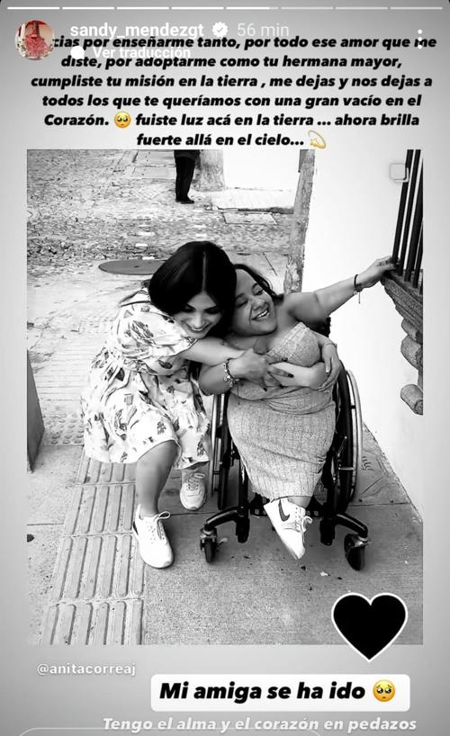 "Gracias por enseñarme tanto, por todo ese amor que me diste, por adoptarme como tu hermana mayor, cumpliste tu misión en la tierra (...) Mi amiga se ha ido, tengo el alma y el corazón en pedazos", escribió Sandy en otra publicación.
