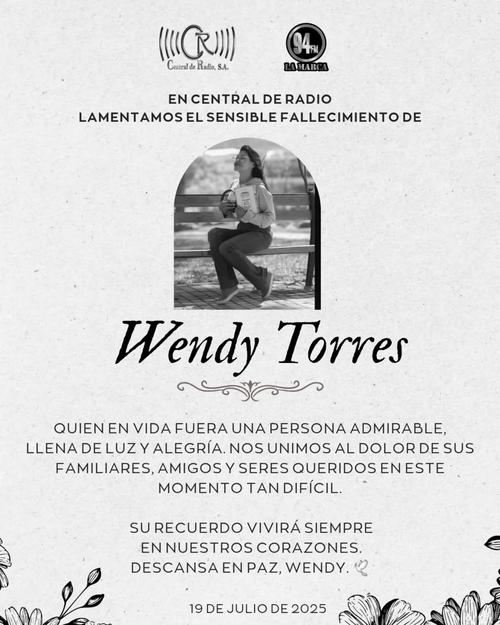 Wendy Torres, locutora de La Marca falleció el pasado sábado 19 de julio.