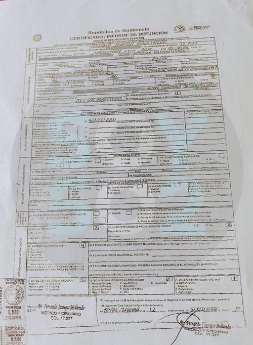 Al día siguiente, la hija de la fallecida llegó a su consultorio en Tecpán, Chimaltenango, con un Certificado de Nacimiento que utilizó para certificar el fallecimiento de la mujer, "aduciendo que este era el correcto".