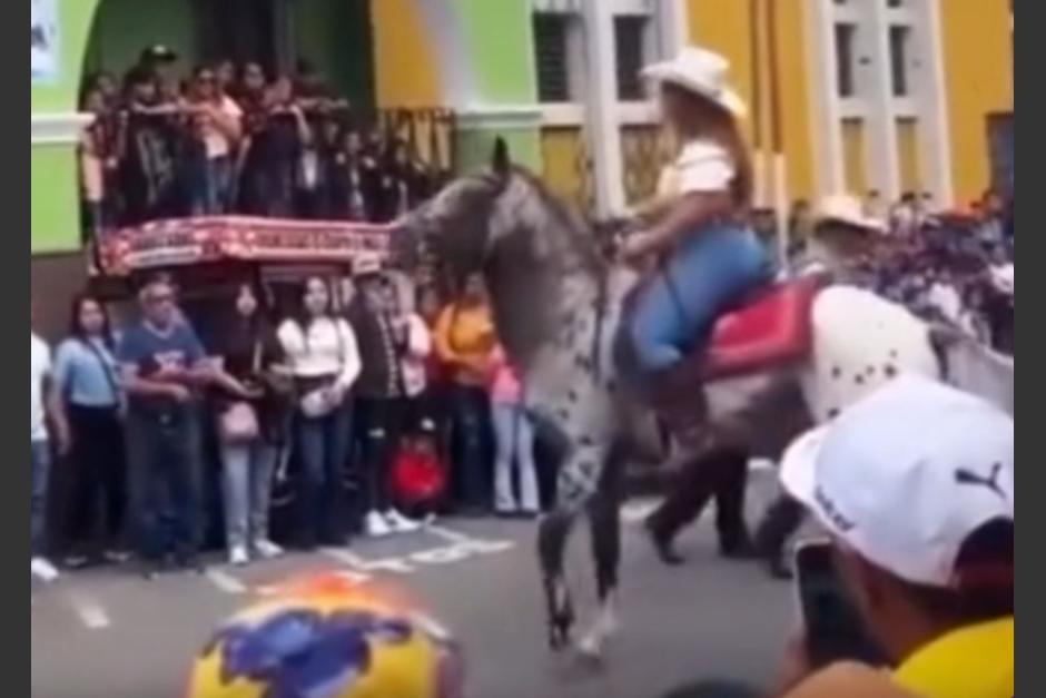 Un video mostró el momento en que una mujer sufrió una brutal caída cuando montaba a caballo durante un desfile hípico en Chimaltenango.