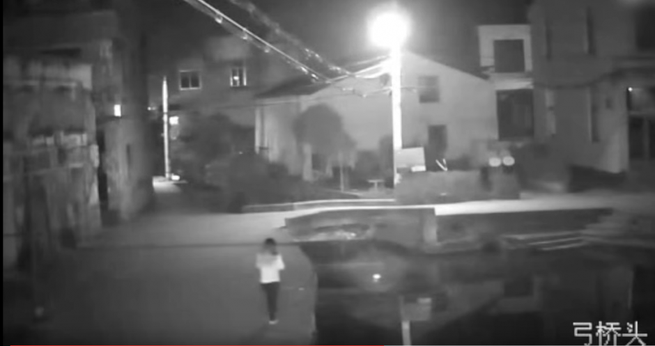 Es de noche y la mujer identificada como Wang, de 28 años de edad, no se percata que se aproxima al borde de un río, al que cae. Ella lucha por unos minutos por salir del agua, pero no lo logró. La mujer fue encontrada ahogada al día siguiente.