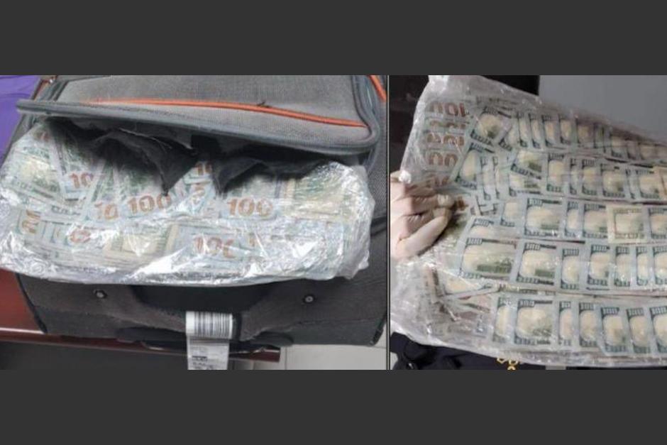 Una mujer procedente de Guatemala fue sorprendida en el Aeropuerto Internacional de El Salvador, cuando transportaba miles de dólares escondidos entre sus maletas.