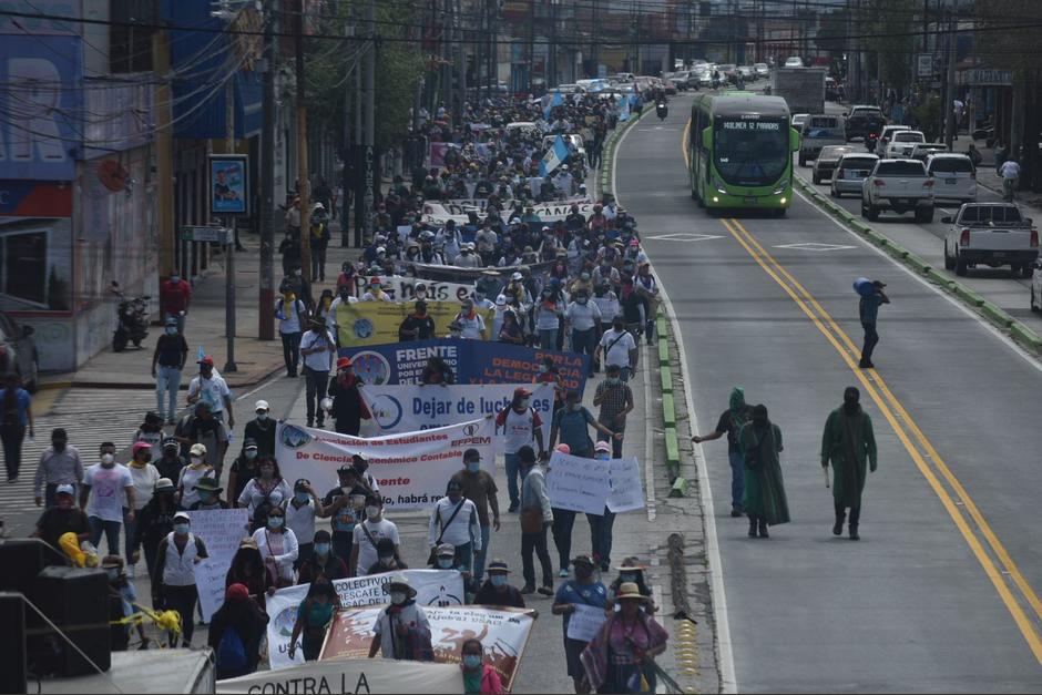 Decenas de estudiantes, docentes y trabajadores de la Universidad de San Carlos (Usac) participan en una manifestación llamada: "Marcha por la defensa de la autonomía universitaria", la cual se concentró en las afueras del Museo de la Usac hasta llegar al Campus Central de la casa de estudios, en la zona 12 capitalina.