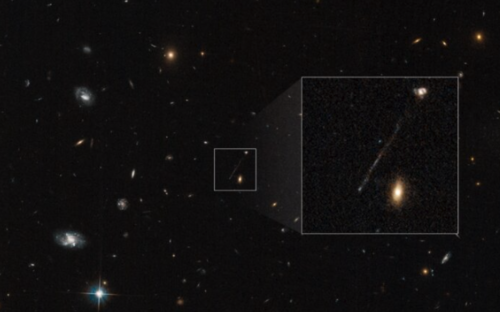 Se trata de un agujero negro fugitivo que es 20 millones de veces más masivo que el Sol y se mueve tan rápidamente que genera nuevas estrellas en lugar de devorarlas.