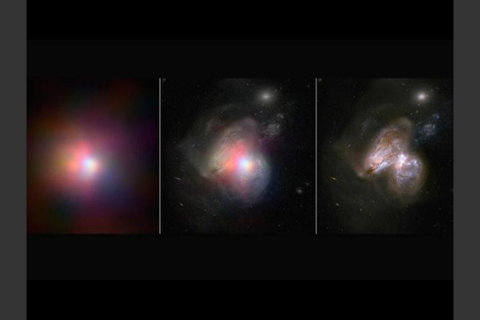 Según dio a conocer el sitio Phys Org, los astrónomos nombraron a este conjunto Arp299, que se compone de dos galaxias enredadas y que se encontraban en un proceso de colisión.