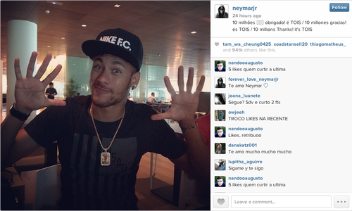 "10 millones de gracias", así celebra Neymar la cifra de 10 millones de seguidores en la red social Instagram. El azulgrana compartió esta imagen acompañada por el mensaje de agradecimiento.