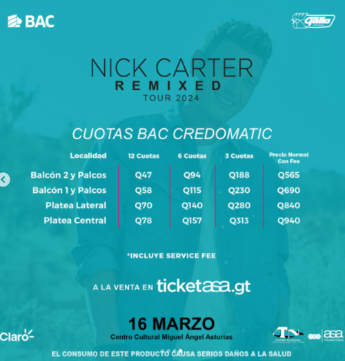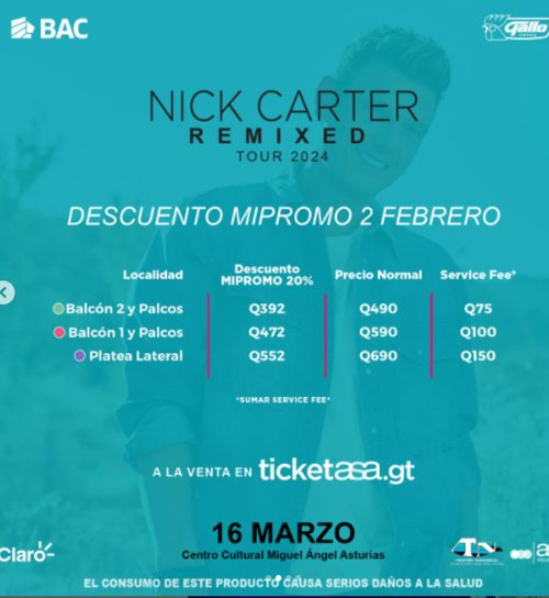 Ya salieron a luz los precios para el concierto de Nick Carter, exintegrante del mítico grupo pop Backstreet Boys en Guatemala.