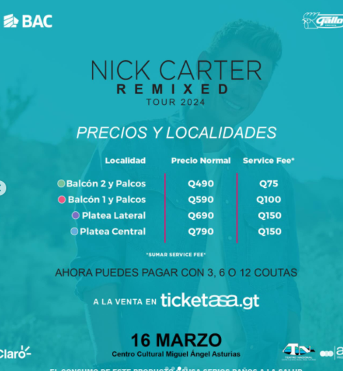 El show de Nick Carter se llevará a cabo el próximo 16 de marzo en el Centro Cultural Miguel Ángel Asturias.