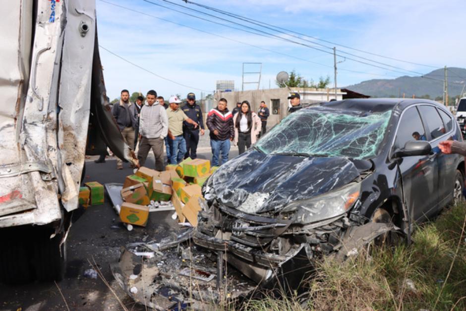 La mañana de este jueves se registró un accidente de tránsito en el kilómetro 85 de la Ruta Interamericana, en jurisdicción de Tecpán Guatemala, Chimaltenango, involucrando un vehículo en el que se transportaban dos niños, además de un tráiler, un vehículo liviano y un camión.