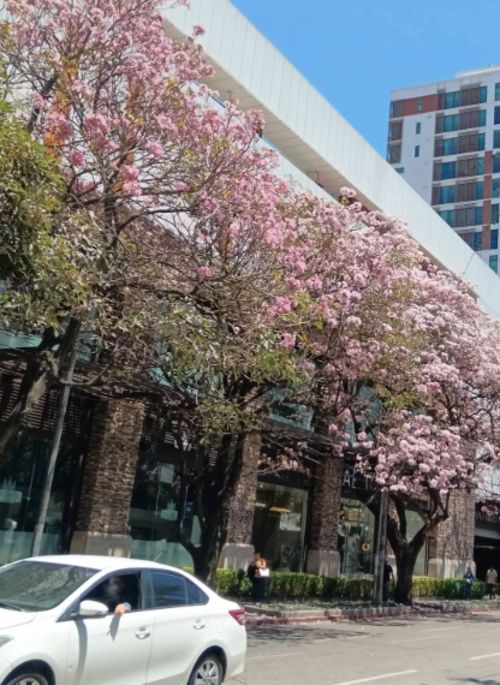 Junto a las jacarandas, florecen en época de Cuaresma y Semana Santa los matilisguates, una especie de árbol tropical que se distingue por sus flores rosa.