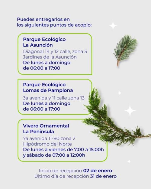 Para evitar estos impactos negativos, cada año la Municipalidad de Guatemala impulsa el Programa de Acopio y Aprovechamiento de Árboles Navideños, una alternativa responsable y amigable con el ambiente que permite reciclar los árboles.