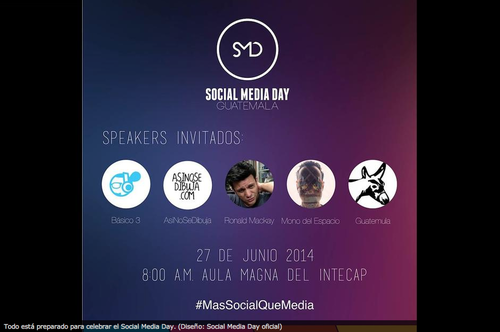 La cita es el 27 de julio a las 8 de la mañana en el Aula Magna del Intecap (cupo lleno) y por streaming a través de la fan page del Social Media Day Guatemala en Facebook.