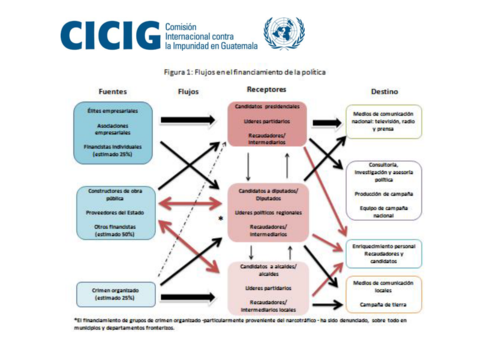Según la CICIG, existen Redes Político Económicas Ilícitas (RPEI), que logran extraer fondos de grupos empresariales, proveedores del Estado, donantes anónimos y principalmente, de estructuras criminales, tanto para el enriquecimiento ilícito propio, como para financiar campañas políticas a cambio de recibir beneficios.