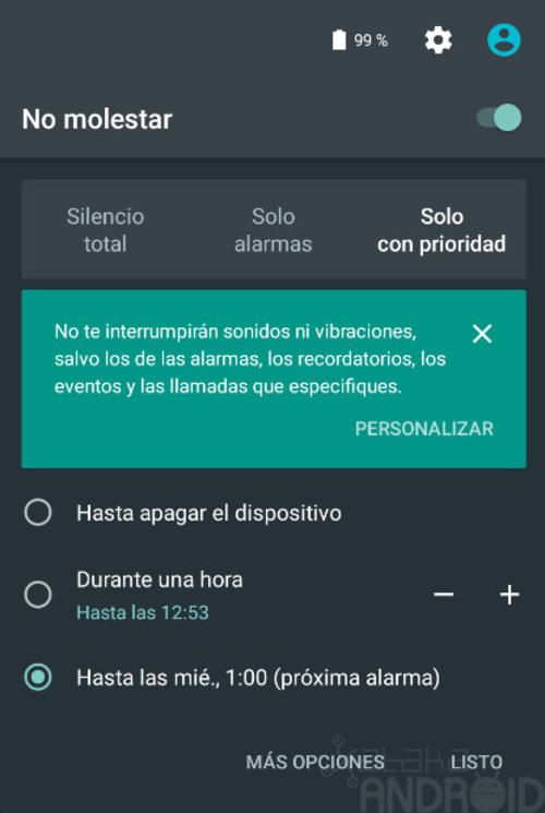Otra de las novedades es que regresa el modo No molestar, la opción que permite decirle al dispositivo que desactive y ponga todo en silencio total para las alarmas y las notificaciones, hasta que suene la siguiente alarma programada, para que tu descanso sea placentero.