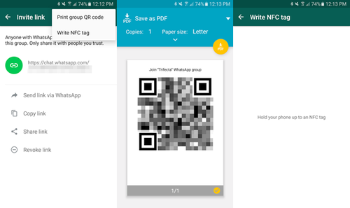 Otra novedad es la creación de invitaciones a un grupo enviando un enlace directo a un determinado contacto. Cualquiera con ese enlace o el código QR podrá unirse al grupo, pero solo está permitido al administrador la creación de dicho enlace.
