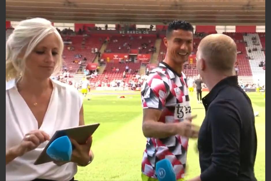 El portugués fue captado en el momento que la presentadora participaba en la previa del partido entre el Manchester United contra el Southampton.