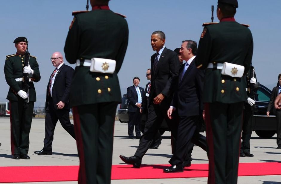 El jefe de la Casa Blanca, quien llegó unos minutos antes de lo programado, fue recibido por el canciller mexicano, José Antonio Meade, y el embajador estadounidense en este país, John Wayne, entre otras personalidades.