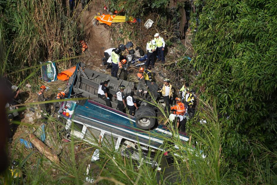 Un bus extraurbano proveniente de El Progreso cayó a una hondonada a eso de las 4:17 de la madrugada, cuando el cielo aún estaba oscuro.