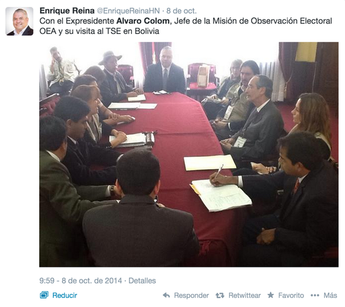 El expresidente de Guatemala Álvaro Colom llegó a La Paz para encabezar la misión que la Organización de Estados Americanos (OEA) envió a Bolivia con el fin de observar los comicios presidenciales y legislativos del próximo domingo.