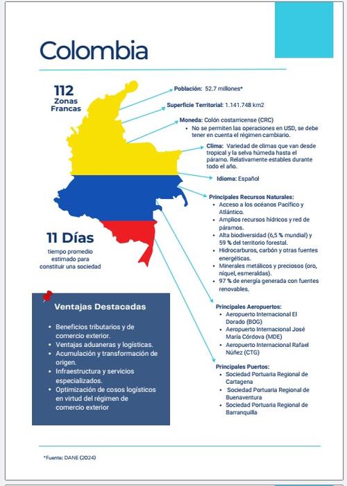 Con apenas con 52.7 millones de habitantes, aproximadamente una cuarta parte de la población de Brasil, Colombia posee 112 Zonas Francas, aproximadamente 14 veces más que su vecino de habla portuguesa, las que están distribuidas en un territorio de 1.141.748 km2.