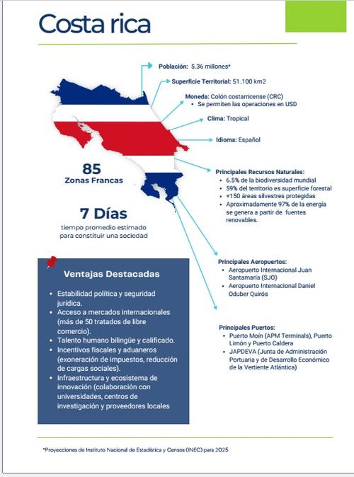 Con 5.36 millones de habitantes, Costa Rica es el país de Centroamérica con menor densidad poblacional, pero también figura con sus 85 Zonas Libres, que albergan a 626 empresas, como el que más recintos de este tipo tiene distribuidos en su territorio de 51,100 km2.