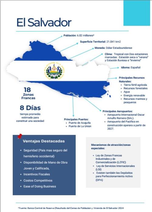 Además de ser un país en donde la moneda oficial es el dólar estadounidense, El Salvador se vende como el más seguro del hemisferio. Con 6.02 millones de habitantes y 21,041 km2 (casi el doble de Curacao), este país centroamericano tiene 18 Zonas Francas que albergan a 170 empresas.