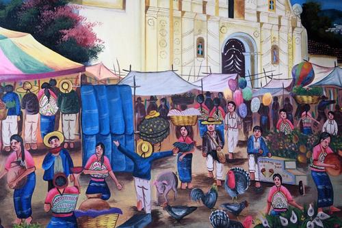 Su estilo se distingue por la armonía entre figuras y diseños geométricos, además de su capacidad para plasmar escenas de la vida cotidiana chapina, como procesiones, desfiles, mercados y diversas festividades.