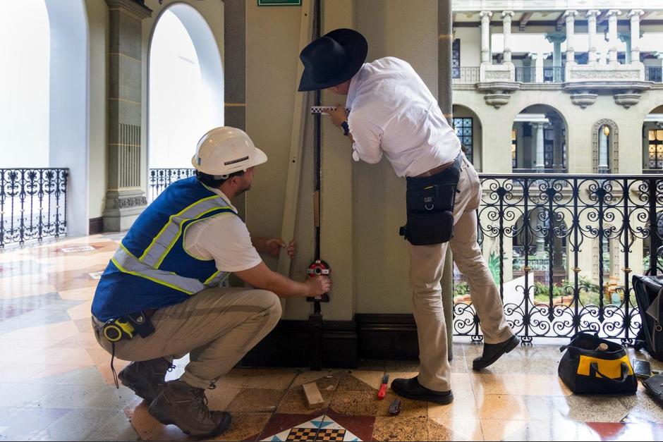 La inspección se llevó a cabo bajo la supervisión del arquitecto del IDAEH, Oscar Caal, y Claudia Barillas, administradora del Palacio, y aunque se localizaron puntos en donde se observan