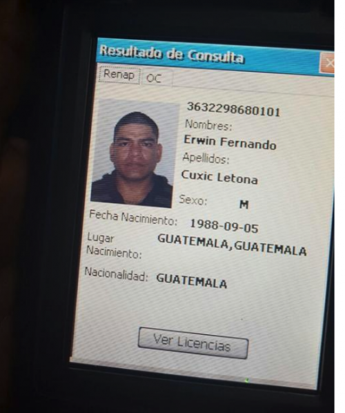 Erwin Armando Cuxic Letona de 30 años es el hombre que disparó, según versión oficial, en contra de Jorge Mario Moreira Reyes alias "El Marino". Ambos cumplían condena por diferentes hechos en la Granja Modelo de Rehabilitación Pavón, ubicada en Fraijanes.