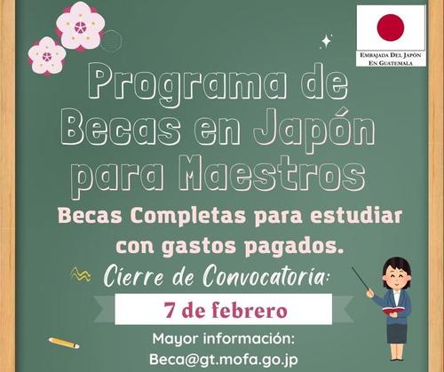La Embajada de Japón en Guatemala, a través de su programa de becas completas para maestros, recientemente publicaron los requisitos de la convocatoria para profundizar su conocimiento en Japón.
