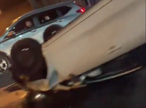 Por último, se muestra el vehículo volcado, ante la mirada atenta de los demás conductores que transitaban el sector a esas altas horas de la noche.