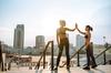 4. Camina con tus compañeros de trabajo durante la hora de descanso y procura mantenerte de pie en cada reunión. En casa trata de tomar un momento para pararte y moverte alrededor de tu sala.