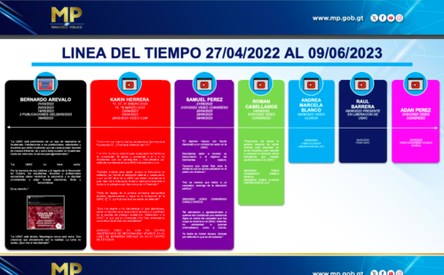 "Se verifica la presencia de Román Wilfredo Castellanos Caal, Raúl Amílcar Barrera Robles, quienes son integrantes de Semilla. Se verificaron las redes sociales, se poseen grabaciones en la que se estableció una línea de tiempo en la que hay un botín político y cobra relevancia Bernardo Arévalo, en su cuenta de "X" (antes Twitter) donde se manifiesta por la toma de la Usac", detalló Saúl Sánchez, de la Fiscalía de Delitos contra el Patrimonio Cultural de la Nación.