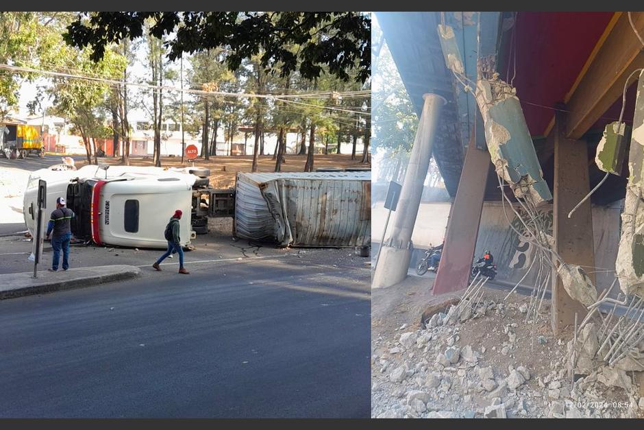 La mañana de este 17 de enero se produjo un accidente de tránsito en el Anillo Periférico y 3ra. calle de la zona 2 capitalina, en el cual estuvo involucrado un tráiler que quedó volcado y dañó el puente que se encuentra en ese sector.