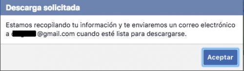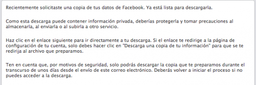 Posteriormente recibirás un correo electrónico con el enlace de descarga de toda la información que Facebook tiene sobre ti.