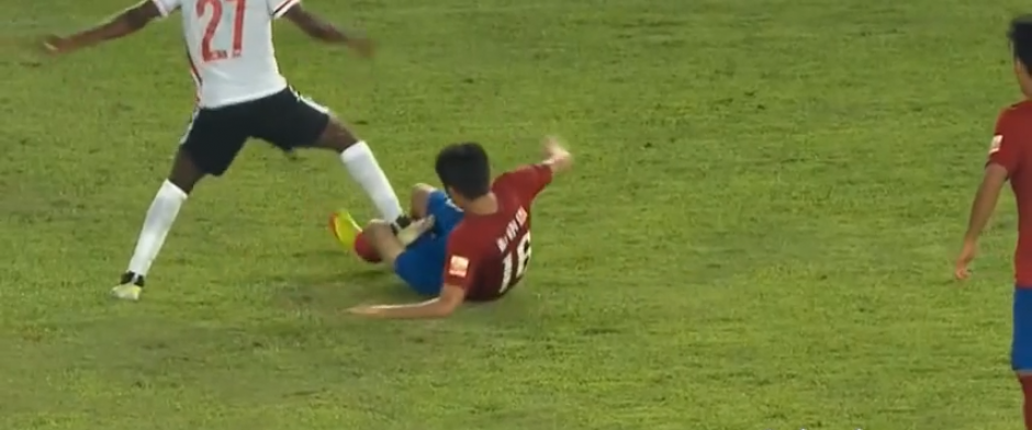 El fin de semana, sin embargo, se le olvidó de su condición de jugador estelar y cometió una falta que le "ganó" la tarjeta roja de inmediato. Un jugador del equipo rival, el Henan Jianye, estaba en el suelo con la pelota y Gervinho lo pateó con los tacos de frente.