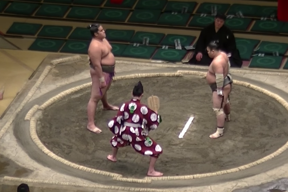 Como parte del deporte nacional de Japón, la práctica del sumo es usual en muchas regiones del país asiático y aunque no es común, una lucha que tuvo lugar en enero pasado, dejó a uno de los peleadores tendido en el dohyō, como es llamada el área circular donde se realiza la pelea.