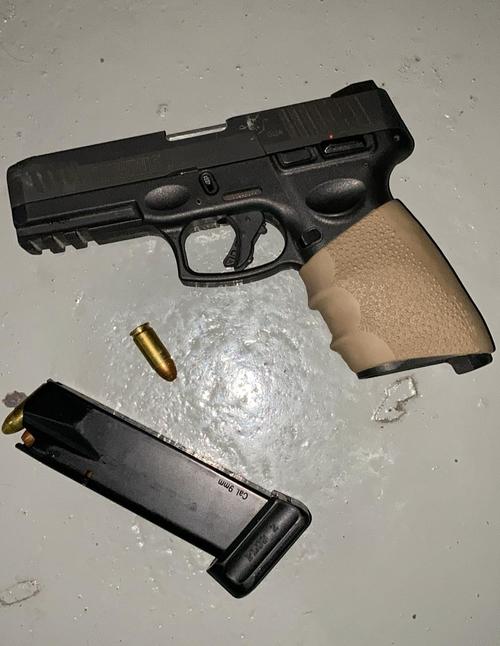 "Tomando medidas de autoprotección y haciendo uso de la fuerza proporcional redujeron al orden al individuo, al hacerle un registro superficial, se le incautó a la altura de cintura, cinto lado derecho, un arma de fuego y 11 municiones. El arma tenía una munición en la recámara", se lee en el parte policial.
