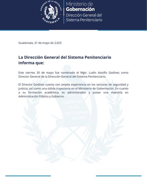 El Sistema Penitenciario tiene nuevo director, se trata de Ludin Astolfo Godínez. Es el tercero en asumir el puesto durante este Gobierno.