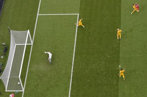 Al minuto 18, Paolo Guerrero hizo un cambio de juego con un pase largo y Carrillo impactó de aire para que la estirada del portero australiano fuera inútil.