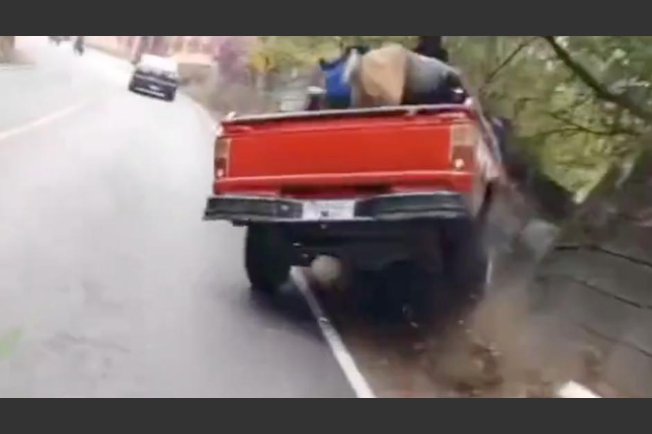A través de un video difundido en redes sociales, se observa el momento en el que un picop pierde el control y ocasiona un accidente. El percance ocurrió en ruta de Panajachel a San Andrés Semetabaj, Sololá.