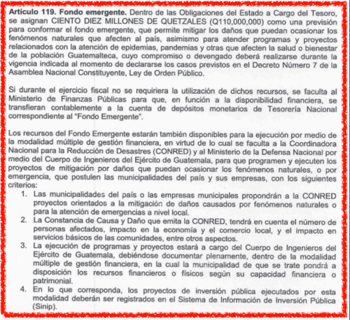 "En el artículo 119 del presupuesto, dejamos Q110 millones para emergencias. Creemos que podemos accionar por esa vía, para empezar a ayudar a las familias", dijo la parlamentaria.