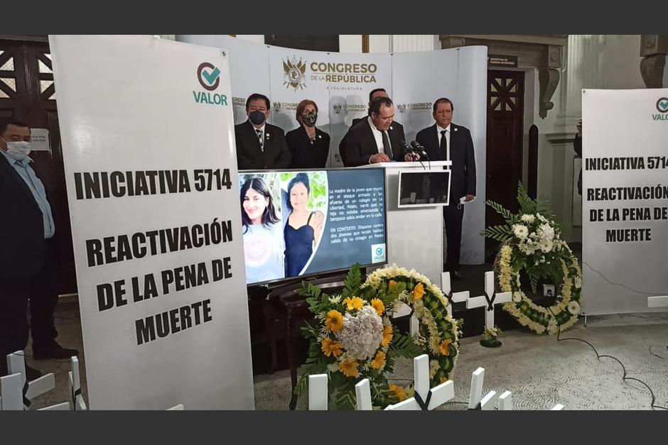 En medio de coronas fúnebres y cruces, los diputados del bloque Valor solicitaron a la Comisión de Gobernación que emita un dictamen favorable, esto para la iniciativa de ley, con la que se busca reactivar la pena de muerte.